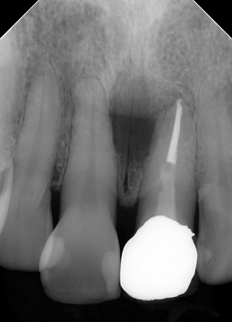 5年前に根っこの治療をしてそのあとから腫れだしてしまって放置していたらだんだん膿が出てくるようになってしまった患者さんです